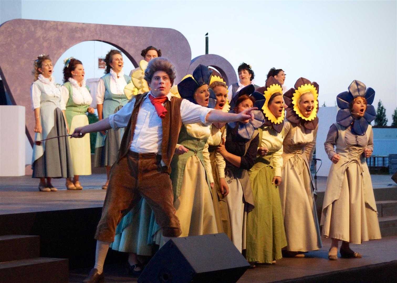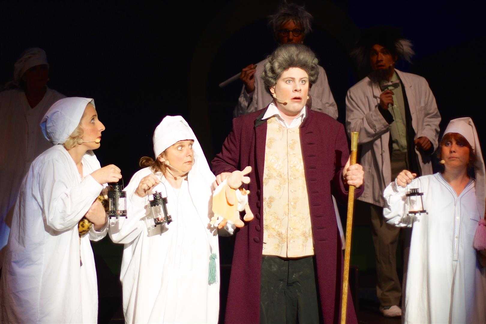 Mit sicht- und hörbarer Lust besingt Instrumentenbauer Johann Denner (Roger Bucher) seine aufwendige Suche nach grösserem Tonumfang und besserer Spielbarkeit seiner neuen Klarinette.
