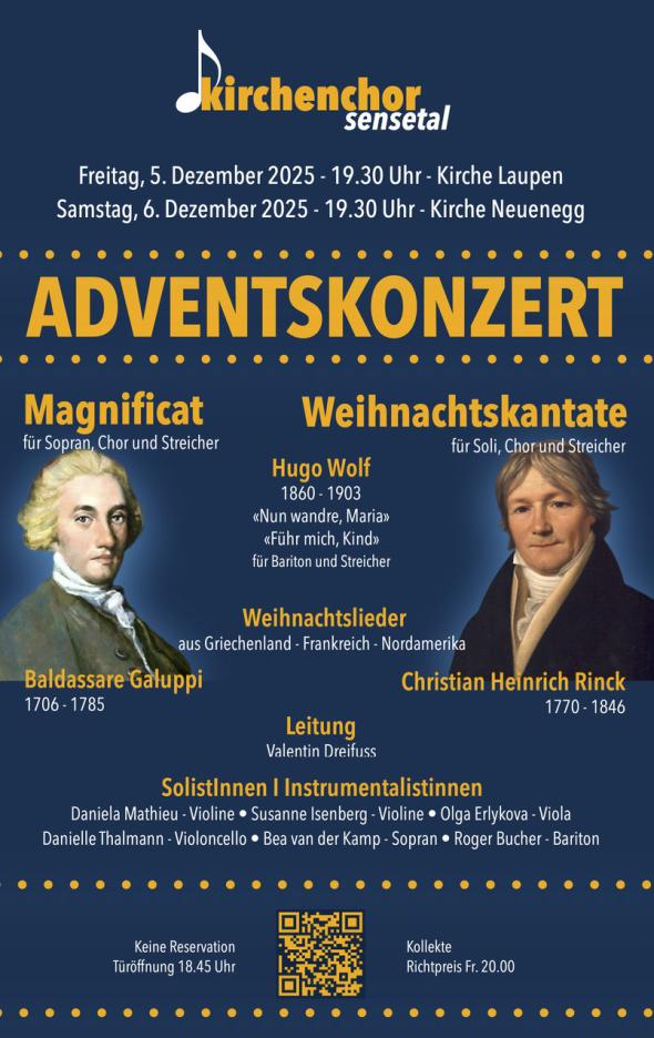 Adventskonzert mit dem Kirchenchor Sensetal Freitag 5.12, 19:30 Uhr Kirche Laupen Samstag, 6.12 19:30 Uhr Kirche Neuenegg Bea van der Kamp, Sopran Roger Bucher, Bariton Valentin Dreifuss, Leitung Fyer_KiChor_Adv_2025.pdf